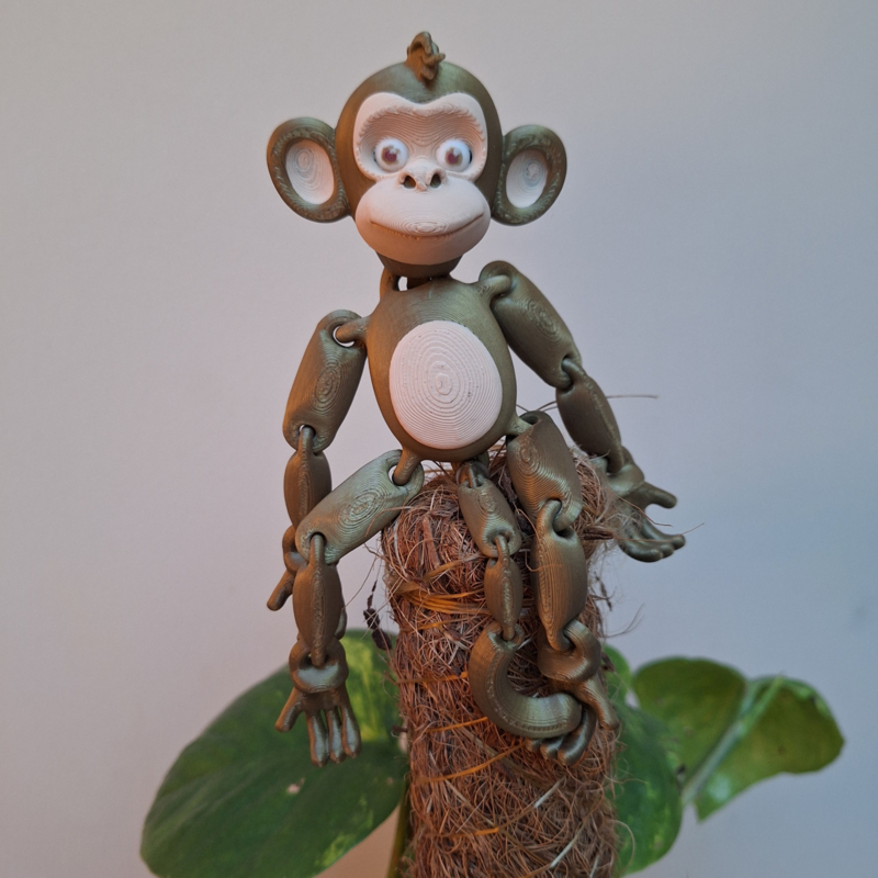 De aap is leuk om op diverse plekjes op te hangen. Door de meebewegende armen, benen en staart is de aap zeer flexibel.